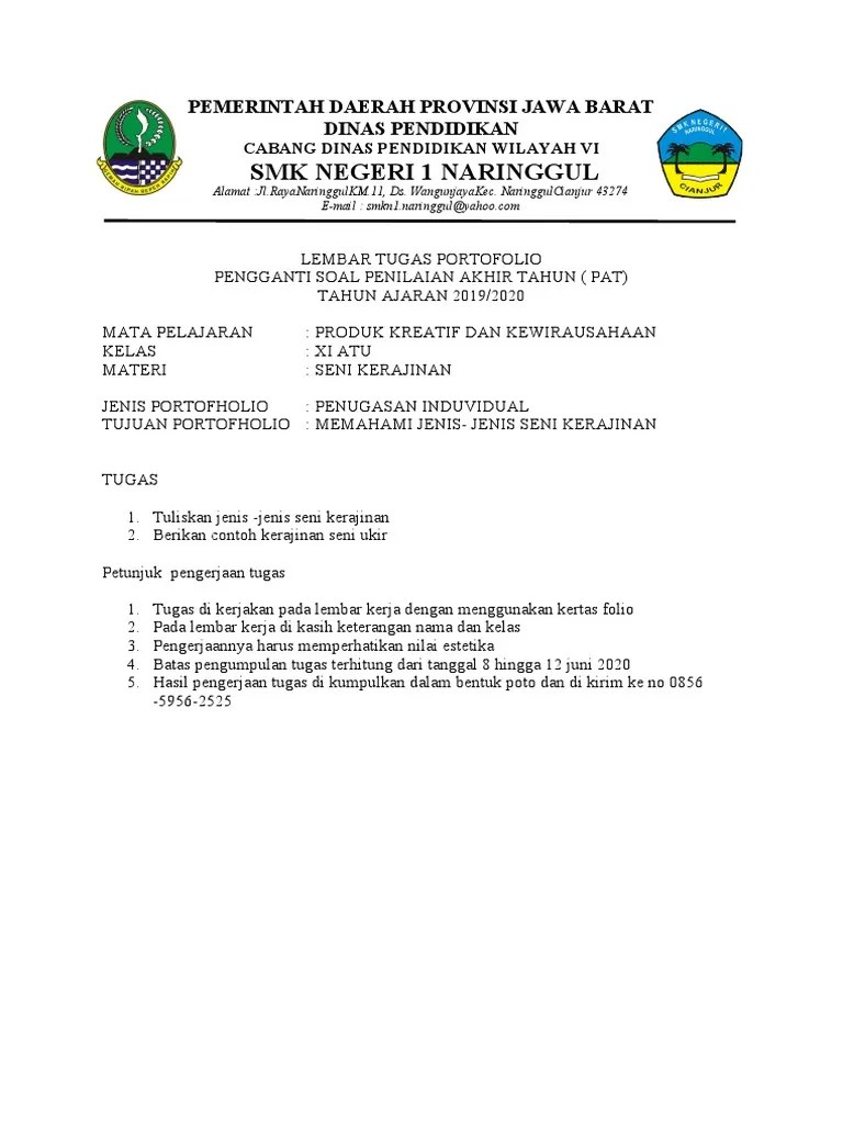 Topik yang diangkat untuk dijadikan kliping pun beragam, mulai dari topik pembelajaran, tata cara pembuatan suatu … Teks harus jelas, mudah dibaca, dan ringkas, tergantung pada kategori katalog atau apa yang coba dipromosikan. 1.2 objektif objektif pembangunan kreativiti dan inovasi dalam kurikulum persekolahan adalah untuk membolehkan murid: Contoh portofolio lamaran kerja yang bukan di bidang kreatif adalah sampel proyek atau sebuah presentasi.
